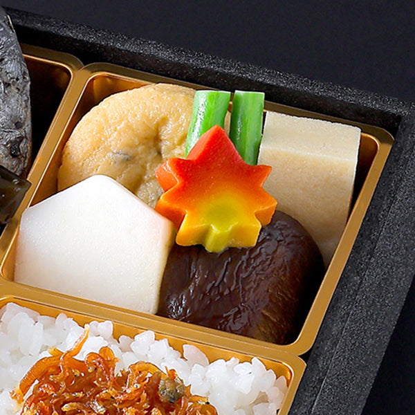 湯葉にほんのり出汁のきいた餡を絡めたゆばのあんかけ、ふっくらやわらかく炊き上がった煮しめ大豆、鰆幽庵焼、合鴨燻製など、人気の逸品を詰め込んだ味わい深いお弁当です。